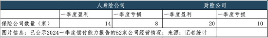 记者统计发现,22家人身险公司中,14家公司一季度实现盈利,8家公司开年即陷亏损泥淖;而30家财险公司中,亦有10家公司报告期内呈现亏损。就偿付能力表现而言,仍有6家人身险公司及17家财险公司核心偿付能力充足率呈现下滑趋势。