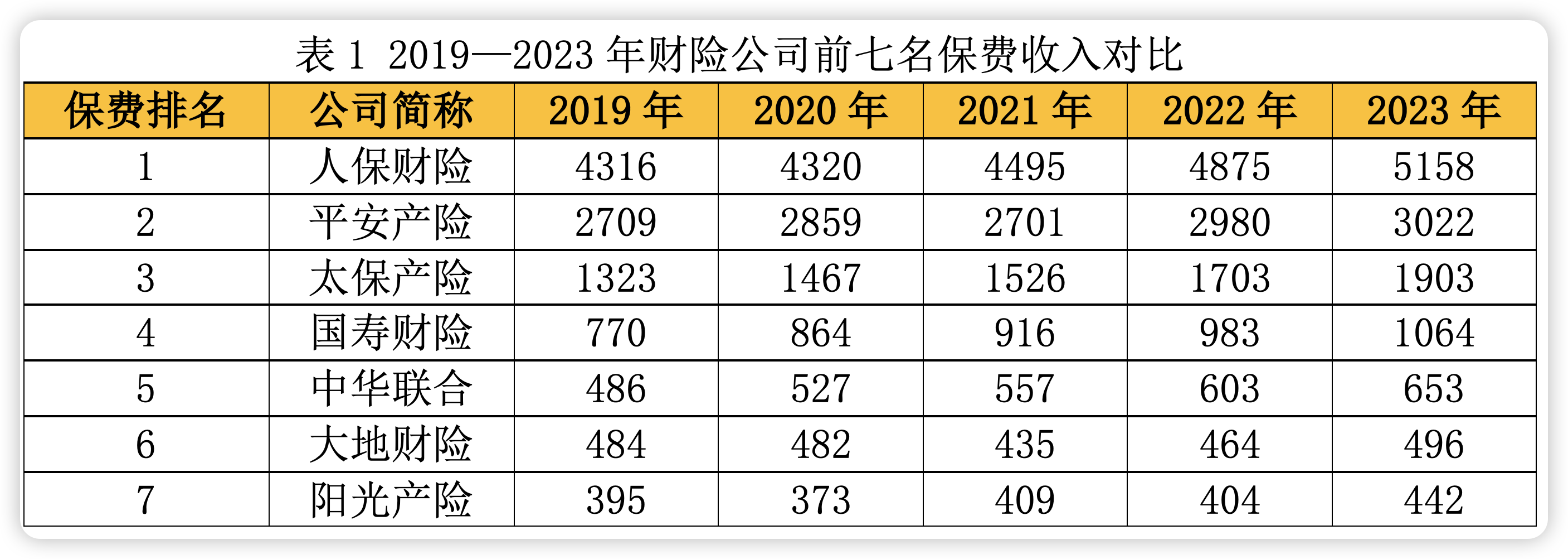 但是放眼全国财产保险业,市场“马太效应”显著,市场前四家排名愈发固化,尤其2023年,人保财险、平安产险、国寿财险三家保费收入分别依次突破5000亿元、3000亿元、1000亿元大关,拉开与其他市场主体差距。引发市场关注的是,位居财险市场第七位的阳光产险,保费规模与中国大地保险仅仅相差54亿元。